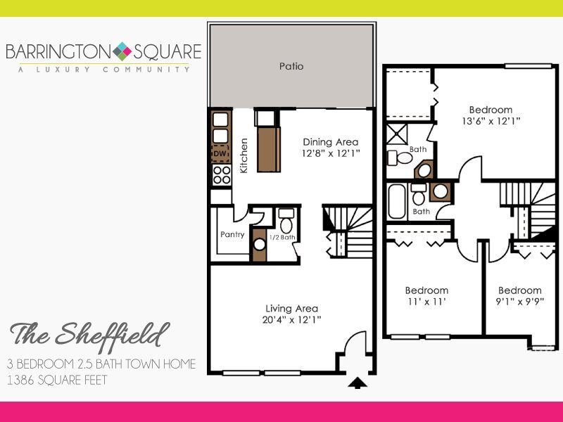 1 Bedroom to 3 Bedroom Apartments at Barrington Square Apartments currently range from $1,100 to $1,875