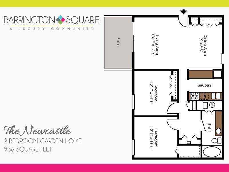 Apartment Model: The Newcastle$1,2752 Bedroom, 1 Bath, 936 sq ftAvailable NowFloorplansPhotos![]()