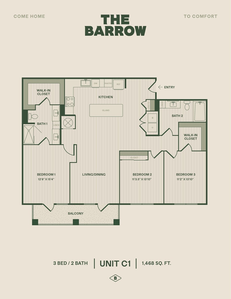 Barrow offers 1 to 3 Bedroom apartments starting from $1,420 and having 727–1,468 sq ft. Here is the current pricing and availability: