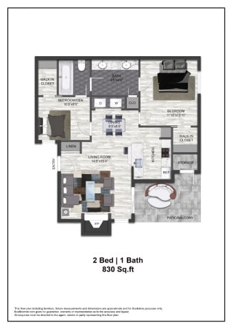 2 Beds, 1 Bath, 830 sq ftTotal Monthly PriceAvailable NowModel Gallery