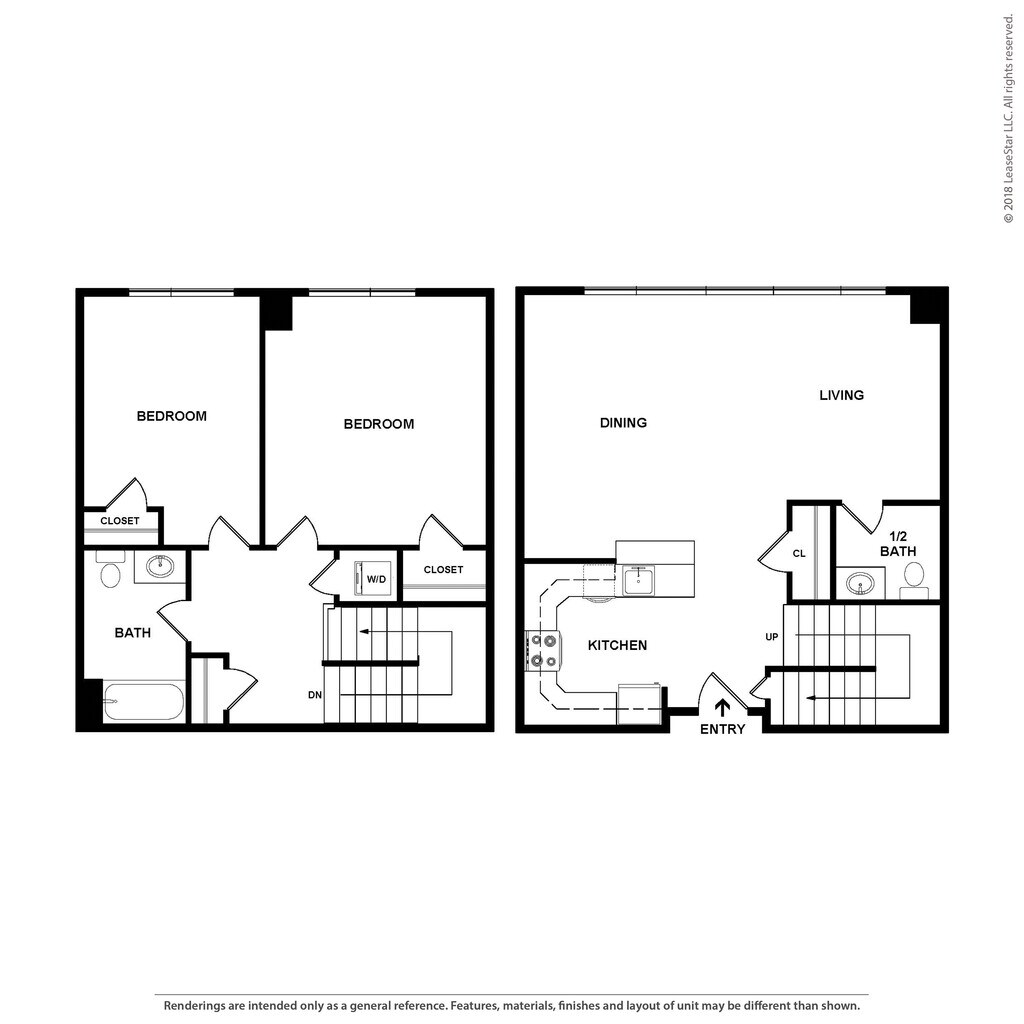 2 Bedroom Townhome - Floorplan 2 ![]()