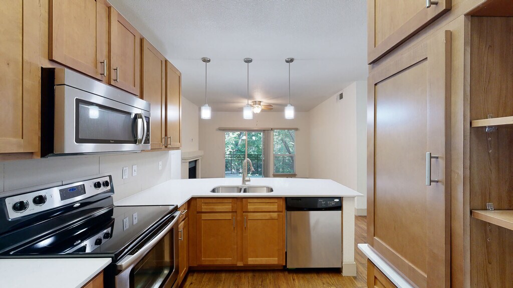 Barton Creek Landing offers remarkable amenities and stylish apartments in Austin, TX. These apartment homes feature modern kitchens complete with granite countertops, custom cabinets, and stainless steel appliances. Enjoy amazing views as well as wood and travertine flooring in select apartments. Barton Creek Landing is home to one of Austin’s only year-round, saltwater pools. Our amenities include a 24-hour fitness center, media center, and a puppy park. Take advantage of covered parking, limited access gates, and an outdoor kitchen and grill. Just off MoPac and 360, our Austin apartments are south of Lady Bird Lake and Barton Springs within the prestigious Eanes School District. Nestled in the greenbelt, Barton Creek Landing features several hiking and biking trails and is only three miles from Zilker Park. We are currently offering self-guided tour appointments.