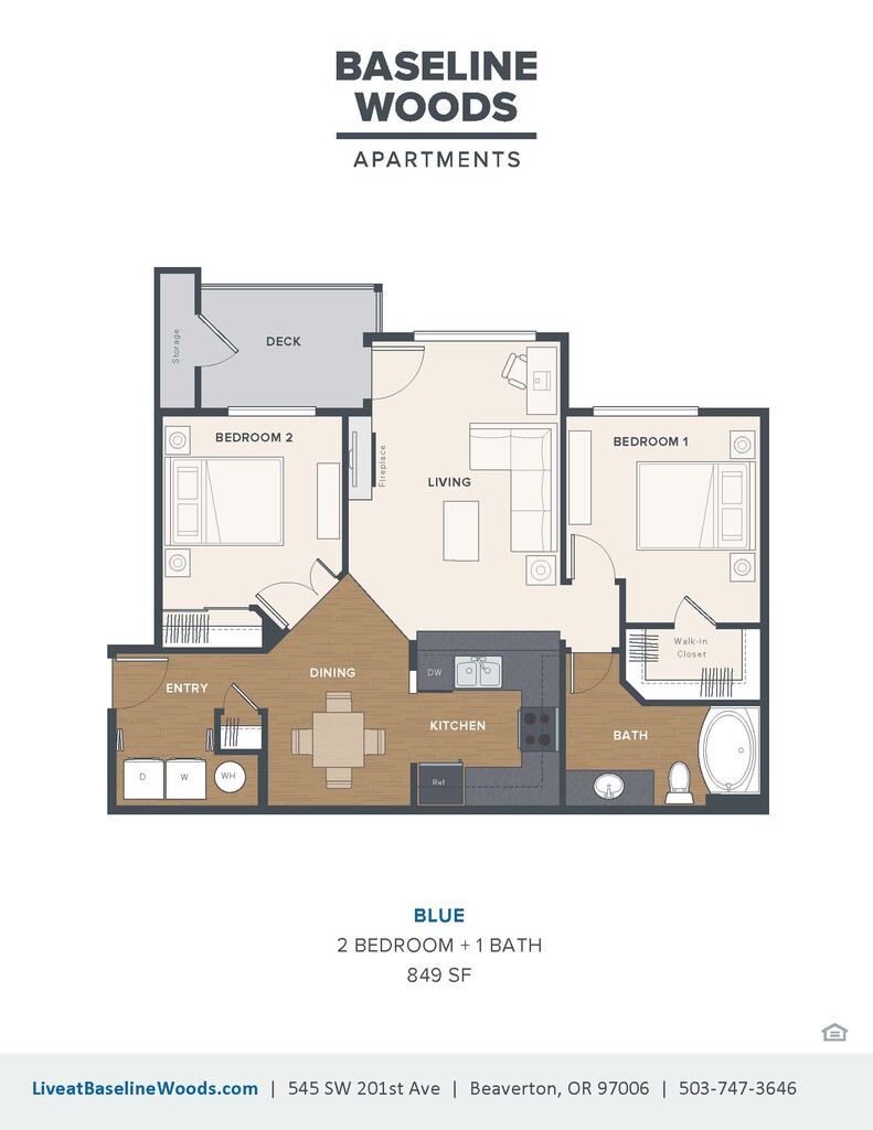 Apartment Model: Blue$1,6752 Bedroom, 1 Bath, 849 sq ftAvailable Now![]()