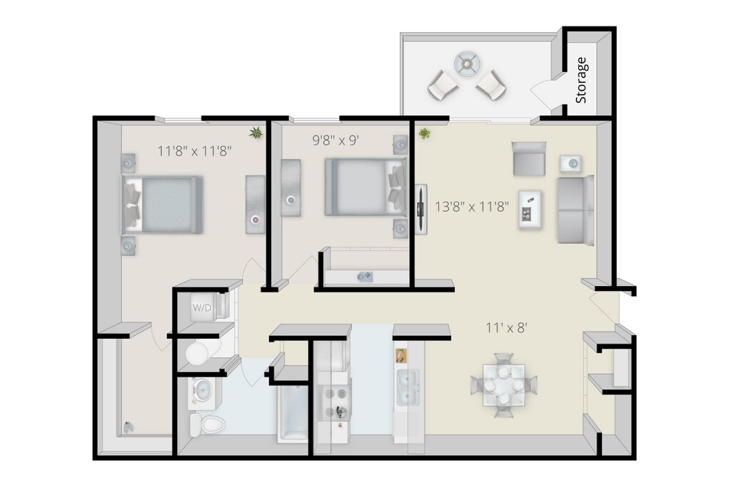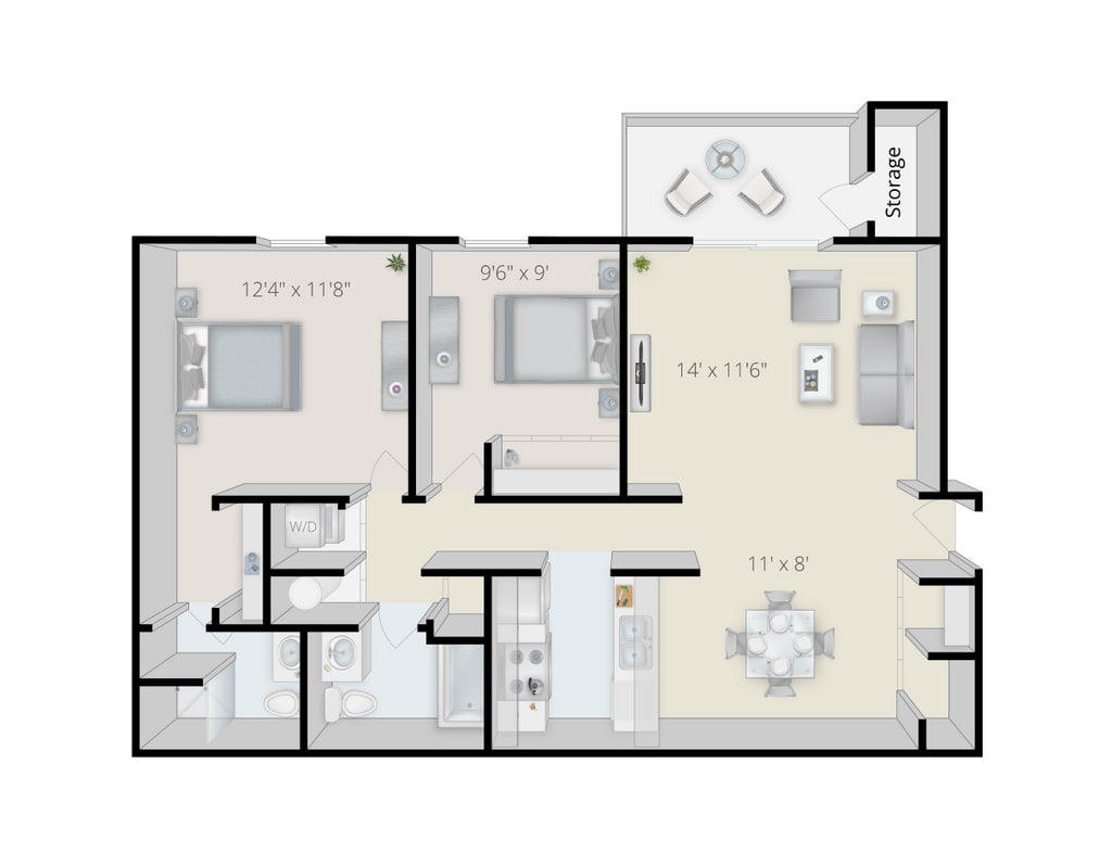 Apartment Model: 2 Bedroom 2 BathroomFrom $1,1252 Bedroom, 2 Bath, 863 sq ftAvailable NowFloor plans are artist's rendering. All dimensions are approximate. Actual product and specifications may vary in dimension or detail. Not all features are available in every rental home. Please see a representative for details.