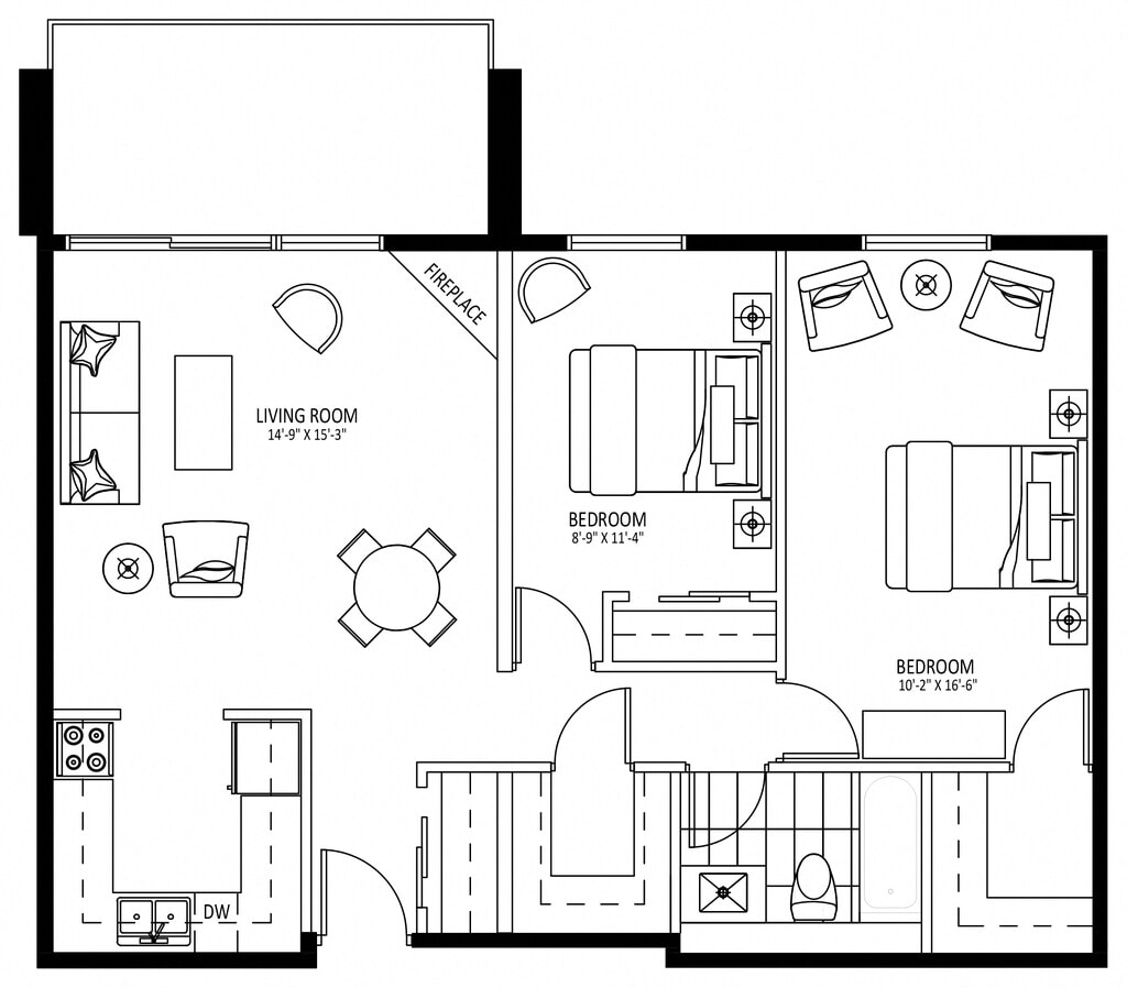 2 Beds, 1 Bath, 845 sq ftAvailable NowModel Gallery