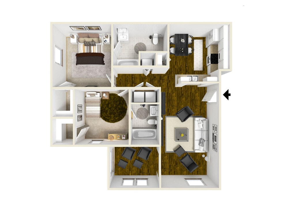 2 Beds, 2 Baths, 950 sq ftAvailable Oct 29Model Gallery