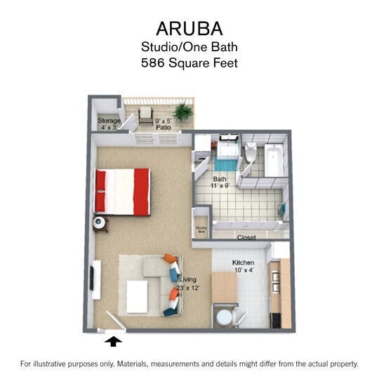 Aruba - Floorplan 2 Apartment Unit: 1207Apartment Model: Aruba$1,081Studio, 1 Bath, 586 sq ftAvailable NowApartment Unit: 206Apartment Model: Aruba$1,081Studio, 1 Bath, 586 sq ftAvailable Now1 Bedroom