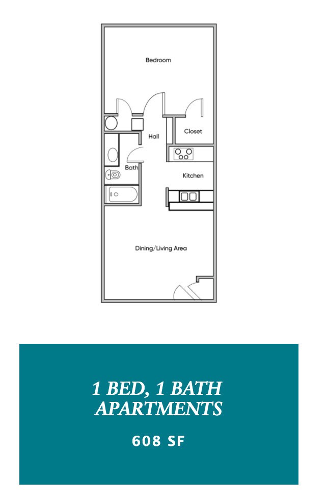 Apartment Model: 1 Bedroom, 1 BathroomFrom $8591 Bedroom, 1 Bath, 608 sq ftAvailable NowFloorplansPhotos![]()