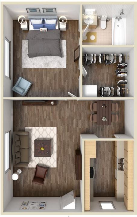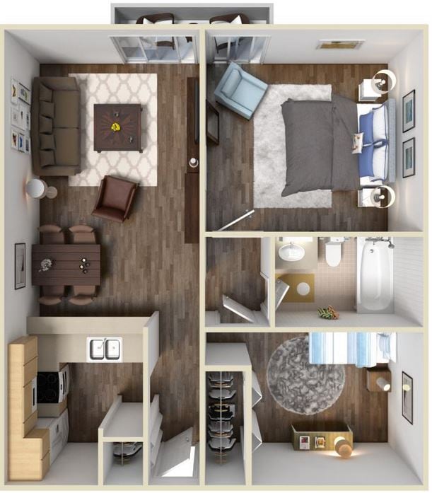 Apartment Model: The WoodbridgeFrom $6051 Bedroom, 1 Bath, 684 sq ftAvailable Now![]()