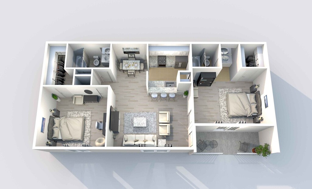 2 Beds, 2 Baths, 900 sq ftModel Gallery