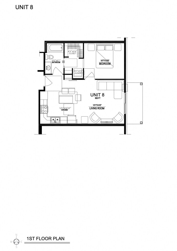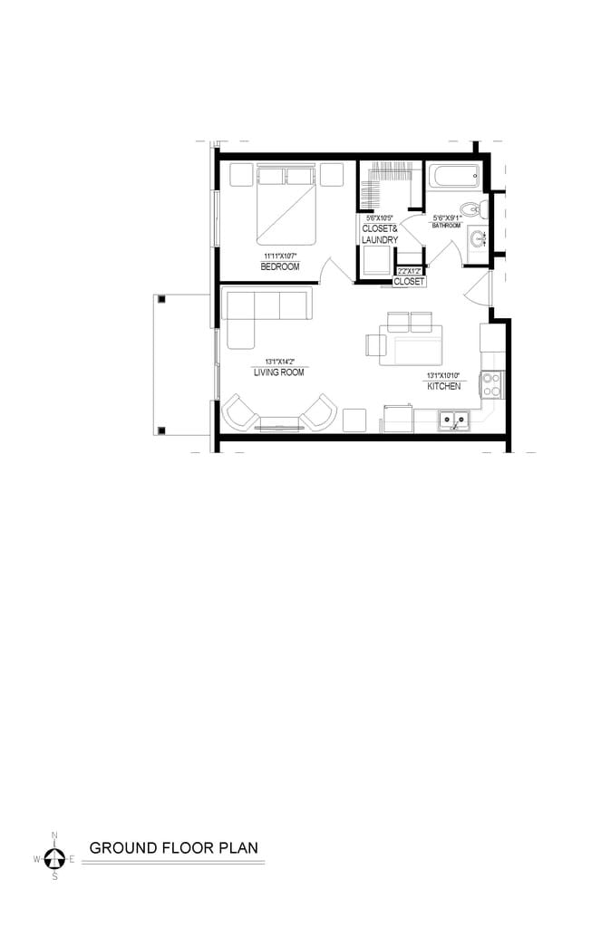 1 bed/1 bath end unit, lower (1/1F) - Floorplan 1 ![]()