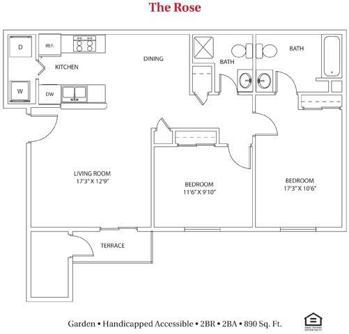 Apartment Model: The RoseCall For Rates2 Bedroom, 2 Bath, 890 sq ftUnavailable![]()