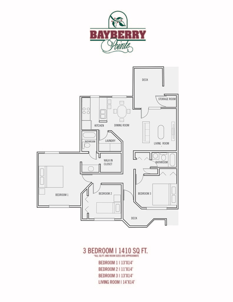 2 Bedroom to 3 Bedroom Apartments at Bayberry Pointe Apartments currently range from $1,400 to $2,100