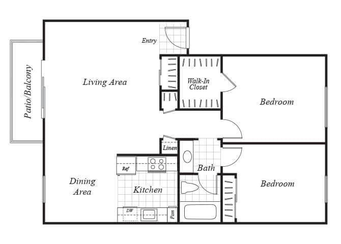 2 Beds, 1 Bath, 851 sq ftLargest 2 BedroomThis is the largest 2 Bedroom at this PropertyModel Gallery