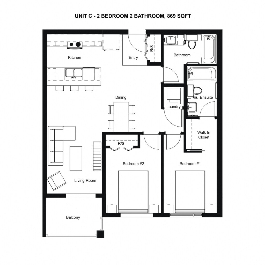 Apartment Model: Floor Plan C - 2 Bedrooms, 2 Bathrooms2 Bedroom, 2 Bath, 869 sq ftAvailable Now![]()