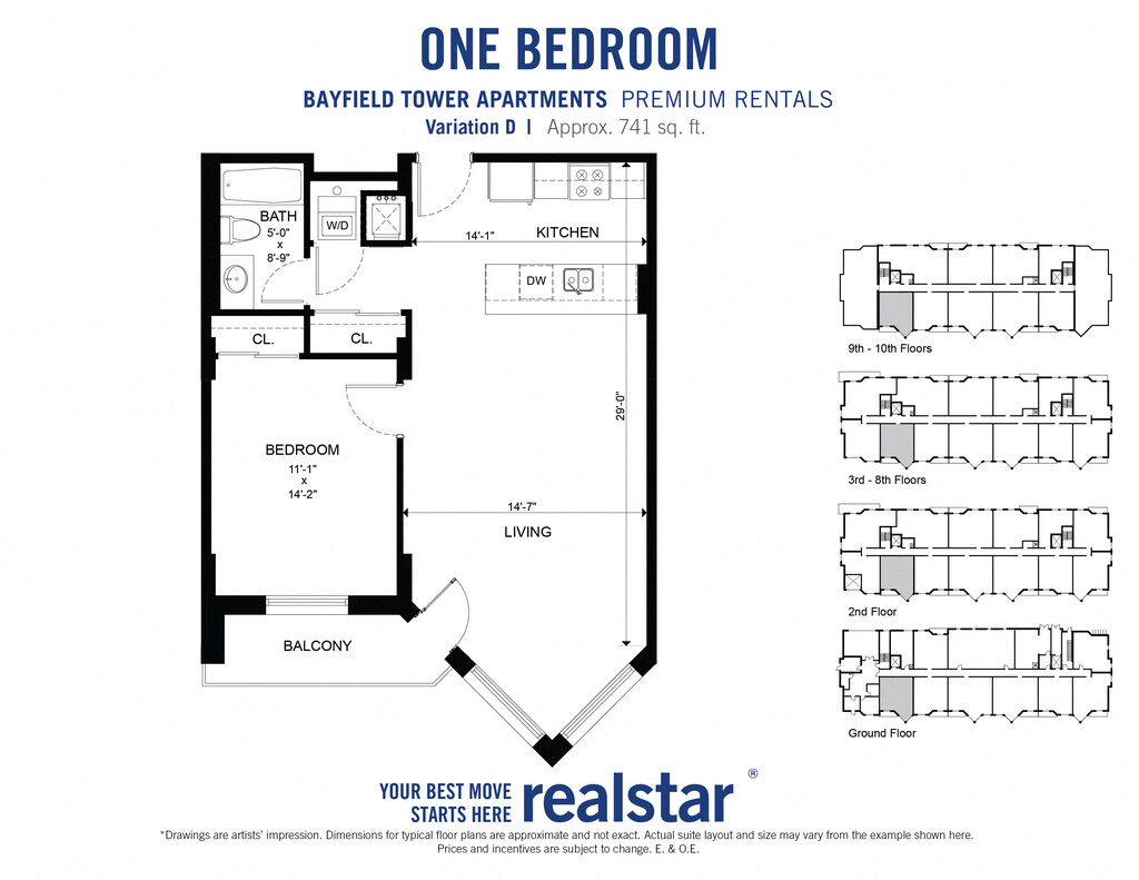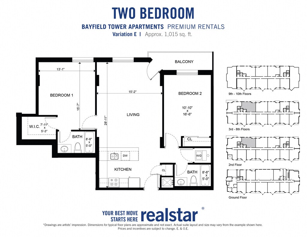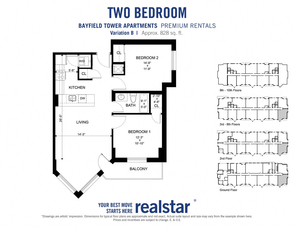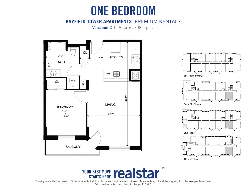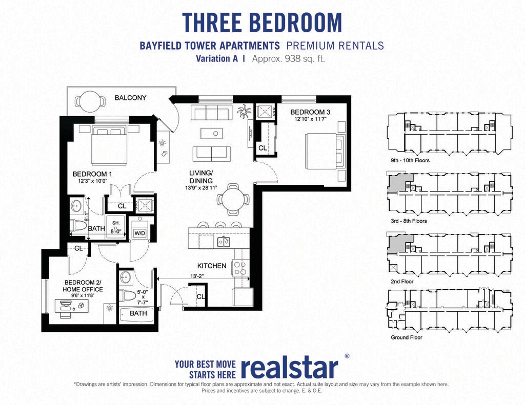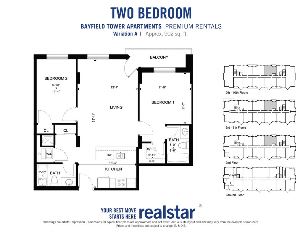 1 Bedroom to 3 Bedroom Apartments at Bayfield Tower Apartments currently range from $1,975 to $2,795