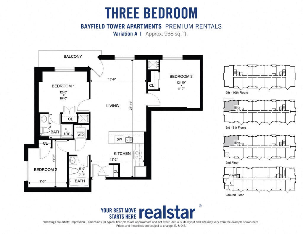 3 Bed 2 Bath A - Floorplan 10 Apartment Unit: 0501Apartment Model: 3 Bed 2 Bath A$2,7953 Bedroom, 2 Bath, 938 sq ftAvailable Now3 Bed 2 Bath B