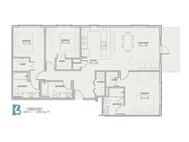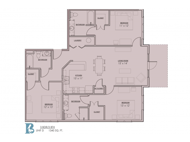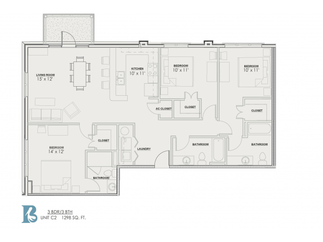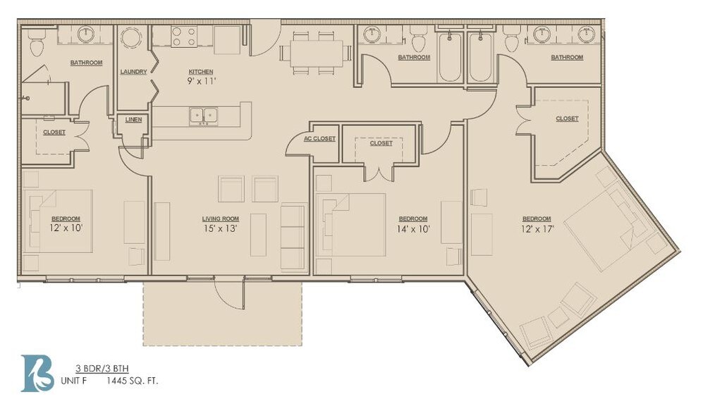 1 Bed, 1.5 Baths, 1000 sq ftLargest 1 BedroomThis is the largest 1 Bedroom at this PropertyModel Gallery
