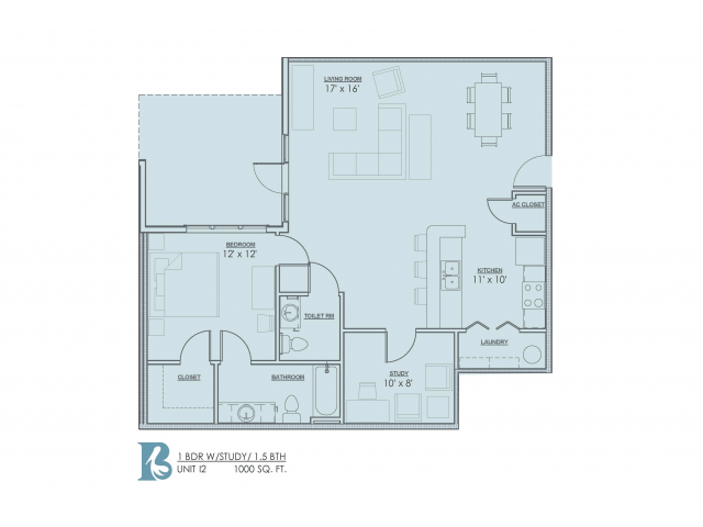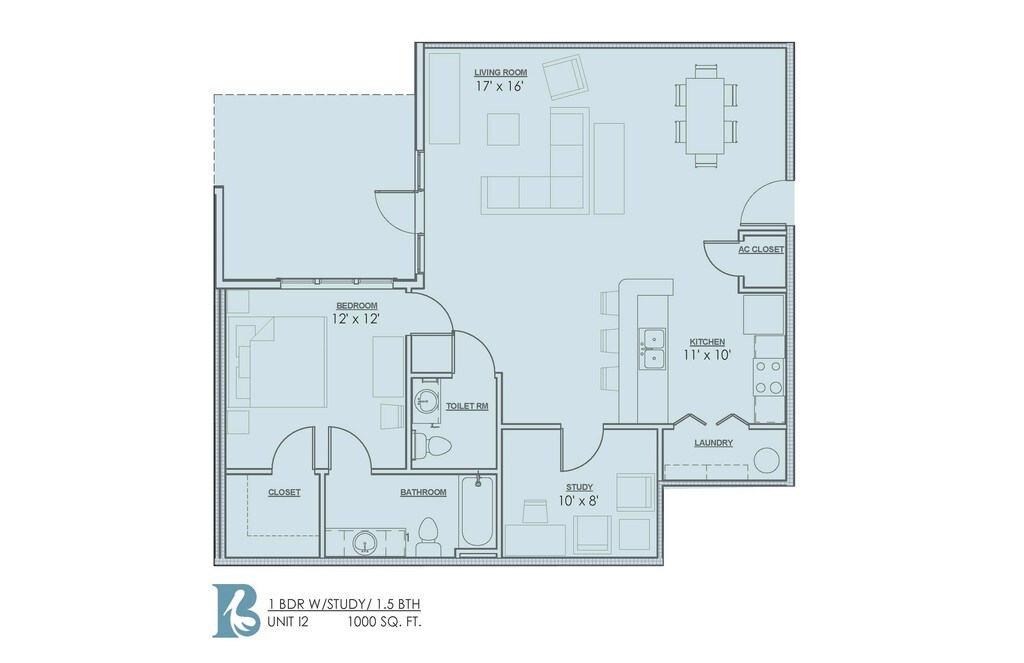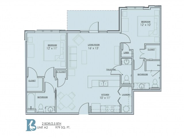 1Bed1.5BStudy-Biscay - Floorplan 3 2 Bedrooms