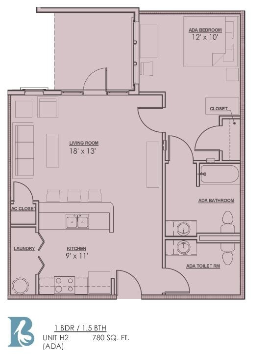 1Bed1B-St. Marie - Floorplan 1 ![]()