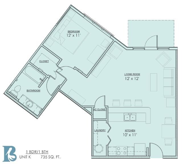 1 Bed, 1 Bath, 735 sq ftModel Gallery