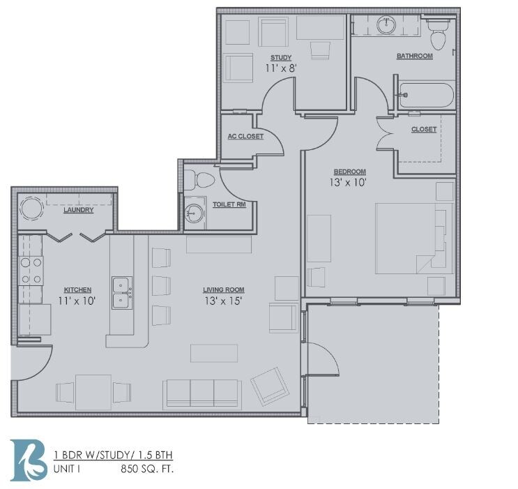 1 Bed, 1.5 Baths, 850 sq ftModel Gallery