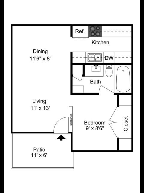 Apartment Model: Efficiency w/Patio 527Sq.Ft.From $7001 Bedroom, 1 Bath, 527 sq ftUnavailableEfficiency w/Patio 527Sq.Ft. - Floorplan 1 Efficiency w/Patio 527Sq.Ft. - Floorplan 2 1BR1BA Up NC