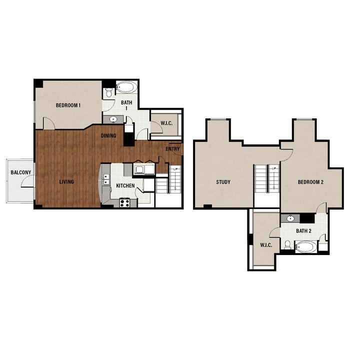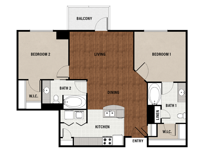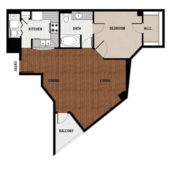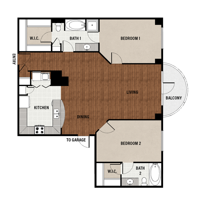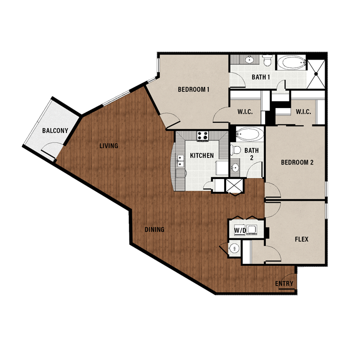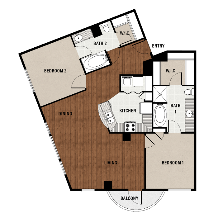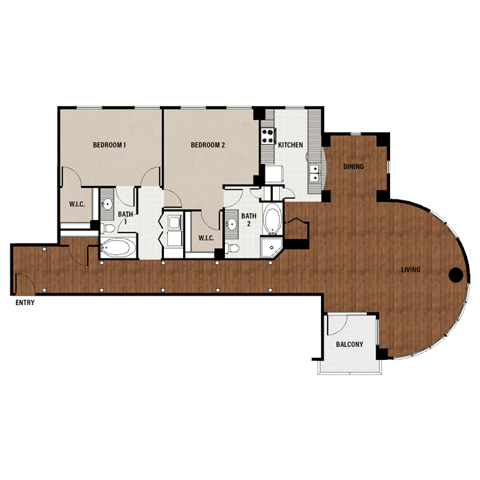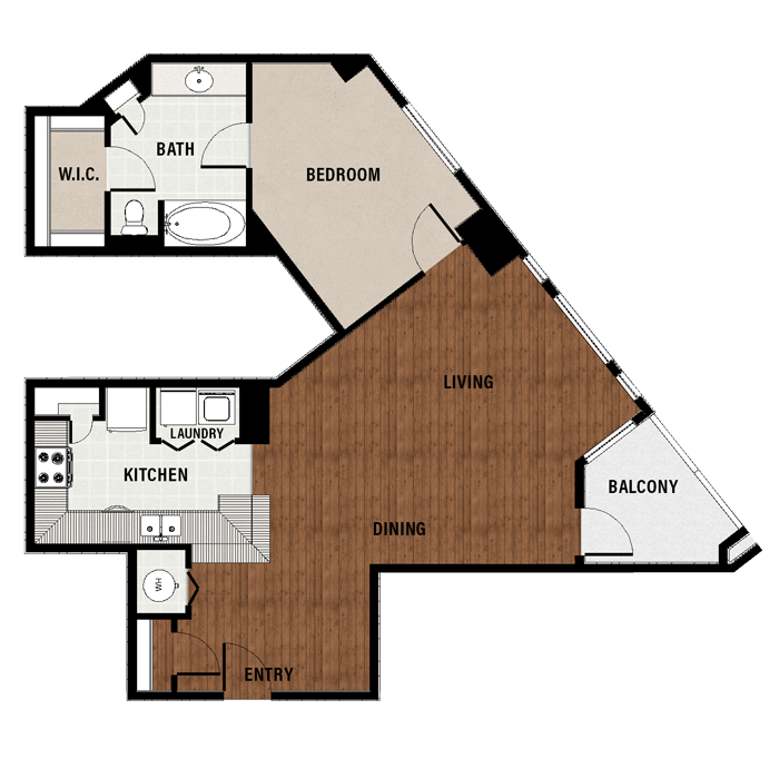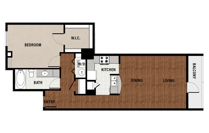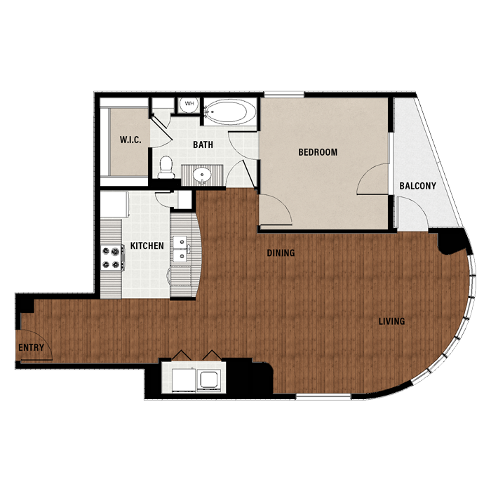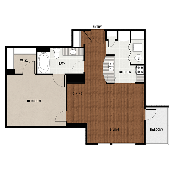 1 Bed, 1 Bath, 689 sq ftAvailable NowModel Gallery