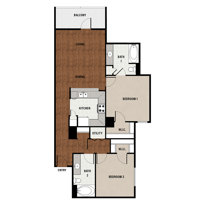 1 Bed, 1 Bath, 889 sq ftAvailable NowModel Gallery
