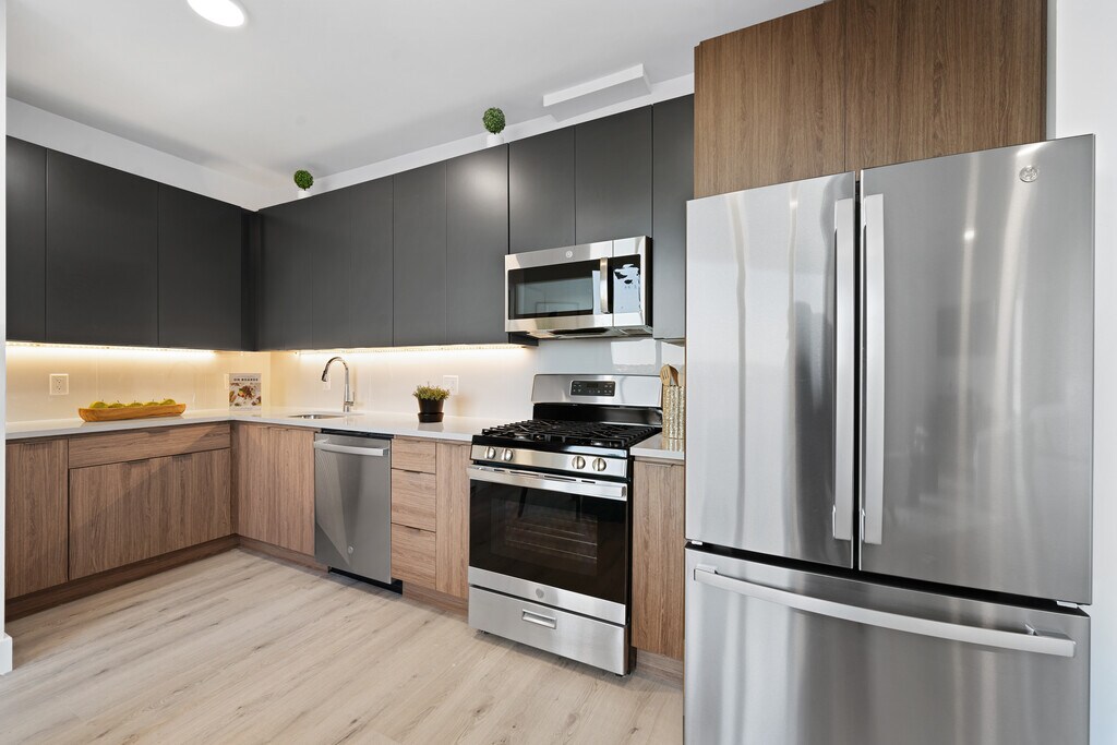 Be the first to experience the ultimate in luxury living at BayPark! This brand new exclusive building features 30 designer residences with a perfect blend of one and two-bedroom apartments. Perfectly situated in Bayonne’s sought-out downtown area, just one block from the 8th street Hudson Bergen Lightrail for a convenient commute into NYC. Each residence is a masterpiece of design and functionality, featuring 10-foot ceilings, floor-to-ceiling windows, expansive living spaces, and upscale finishes. The kitchens are a culinary dream, equipped with brand new appliances, double-door fridges, and arctic white quartz countertops, stylish two-tone cabinetry and spacious islands create the perfect space for entertaining, while stunning Elize pendant lighting over the kitchen island adds a touch of sophistication. The bathrooms are equally impressive, with stylish designer touches like LED frameless circular mirrors, high-gloss floating vanities, and acrylic soaking designer tubs. Plus, with massive walk-in closets and high-efficiency central heating and cooling, you'll enjoy the ultimate in comfort and convenience. Each residence includes an in-unit washer and dryer. Building amenities include private indoor garage parking with convenient EV charging stations, an exclusive rooftop fitness studio, and a stunning sundeck rooftop oasis featuring grills and firepits - perfect for relaxation, entertainment, and taking in breathtaking views. Pre-leasing! Inquire for more information and special offers. Prices listed are net effective pricing.
