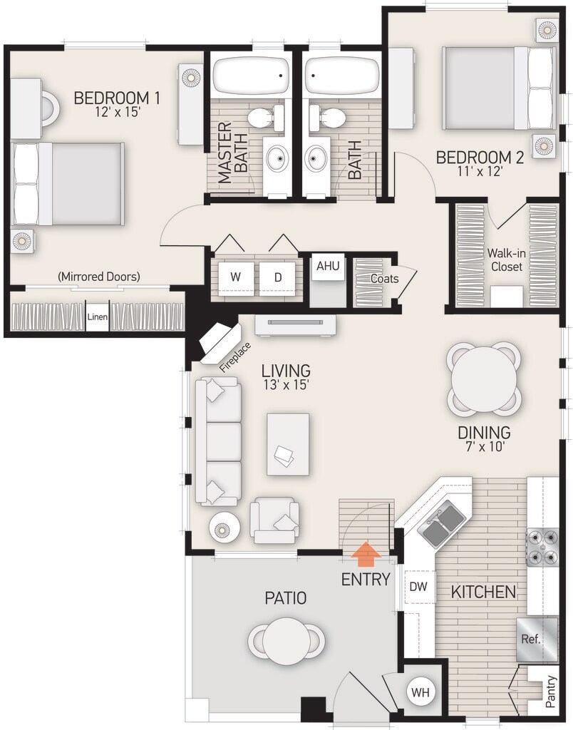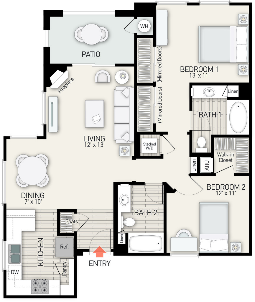 2 Beds, 2 Baths, 1087 sq ftAvailable NowModel Gallery