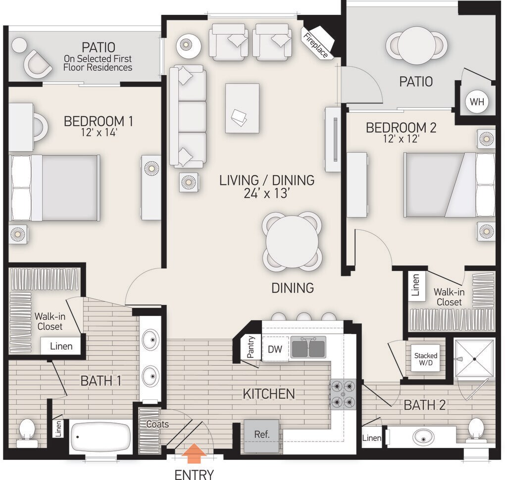 2 Beds, 2 Baths, 1087 sq ftAvailable NowCheapest 2 BedroomThis is the cheapest 2 Bedroom at this PropertyModel Gallery