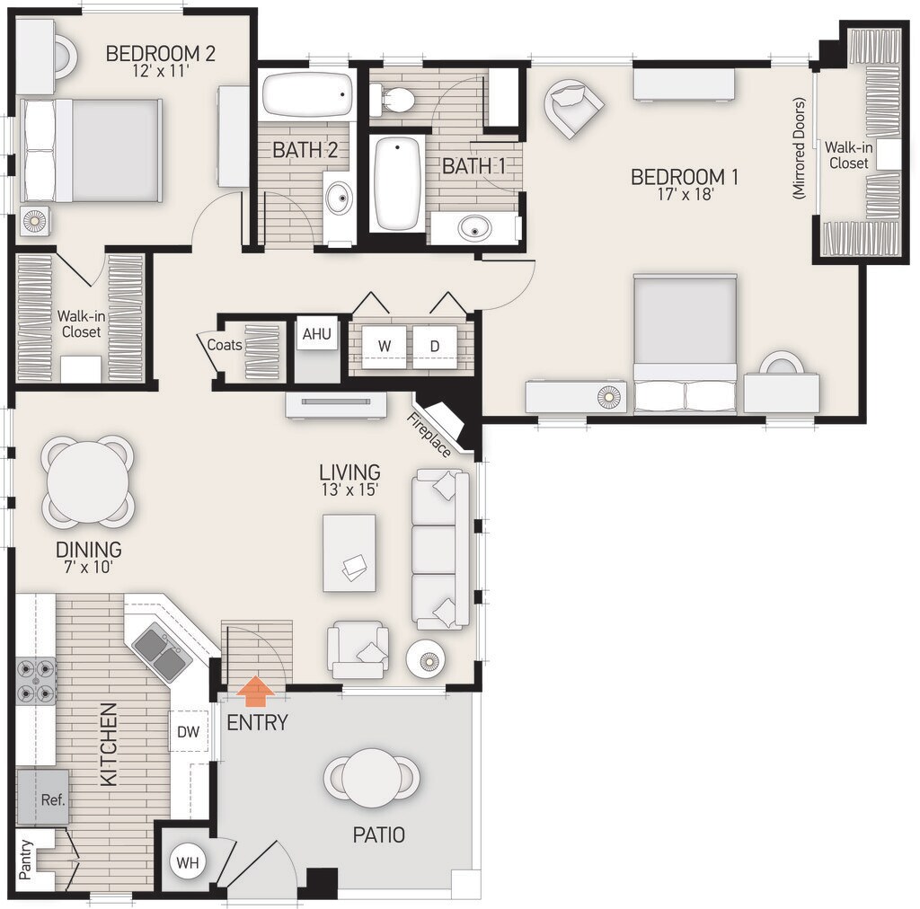 Apartment Model: Plan 5From $4,0752 Bedroom, 2 Bath, 1087 sq ftAvailable Now![]()