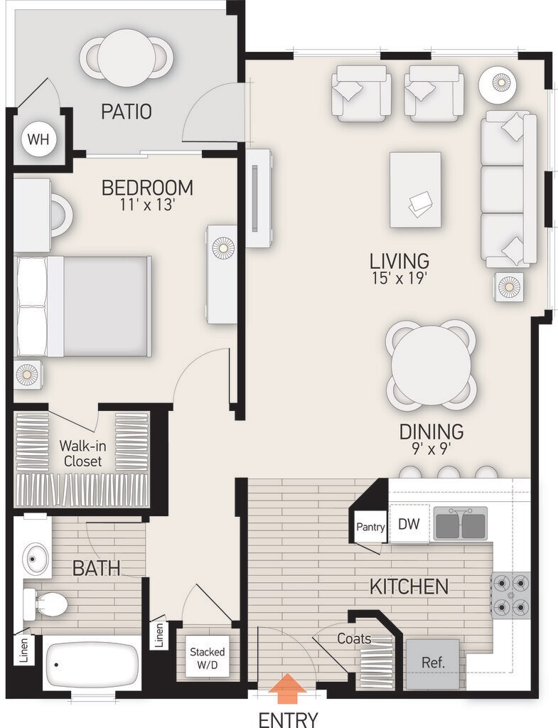 1 Bed, 1 Bath, 950 sq ftAvailable Dec 13Largest 1 BedroomThis is the largest 1 Bedroom at this PropertyModel Gallery