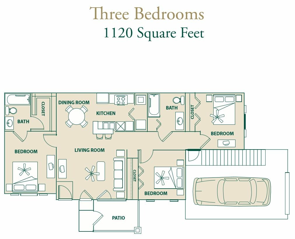 Apartment Model: 3X2Call For Rates3 Bedroom, 2 Bath, 1120 sq ftUnavailableFloorplansPhotos![]()