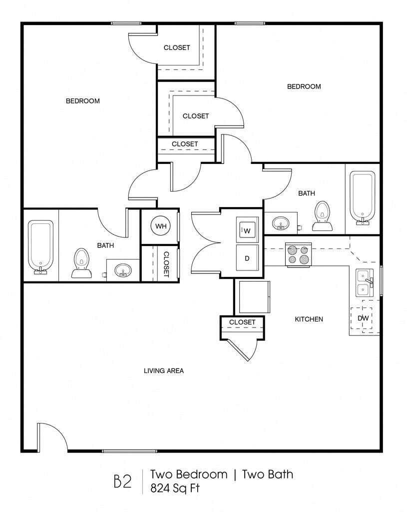 Apartment Model: B2$1,0992 Bedroom, 2 Bath, 824 sq ftAvailable Now![]()