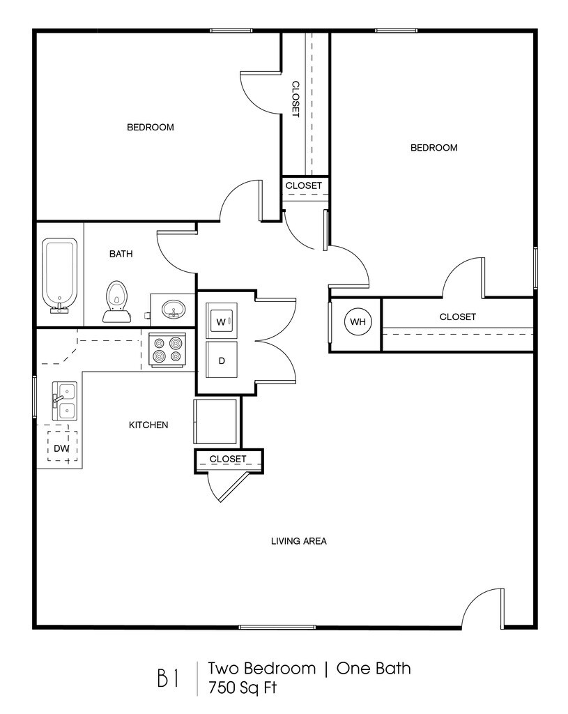 2 Beds, 1 Bath, 750 sq ftAvailable NowModel Gallery
