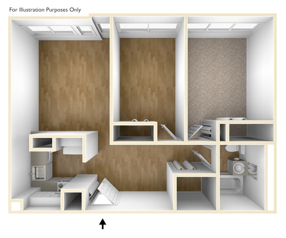 Apartment Model: 2 Bedroom 1 Bath$1,6152 Bedroom, 1 Bath, 621 sq ftUnavailable![]()