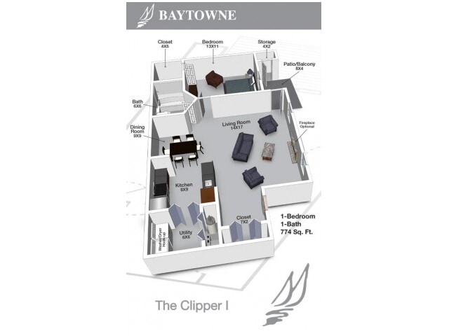 Apartment Model: Clipper I Classic$1,0401 Bedroom, 1 Bath, 774 sq ftUnavailableFloorplansPhotos![]()
