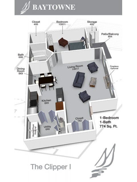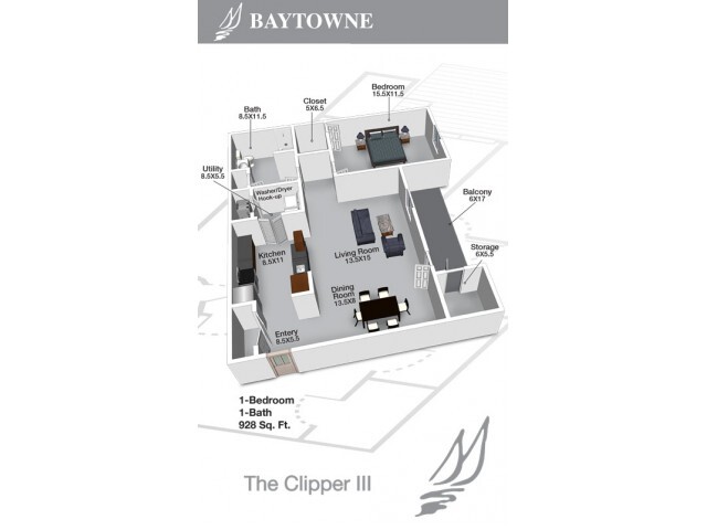 Apartment Model: Clipper III$1,2101 Bedroom, 1 Bath, 928 sq ftUnavailable![]()