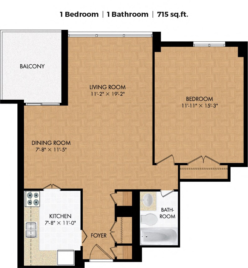 1 Bed, 1 Bath, 635-726 sq ftAvailable NowModel Gallery