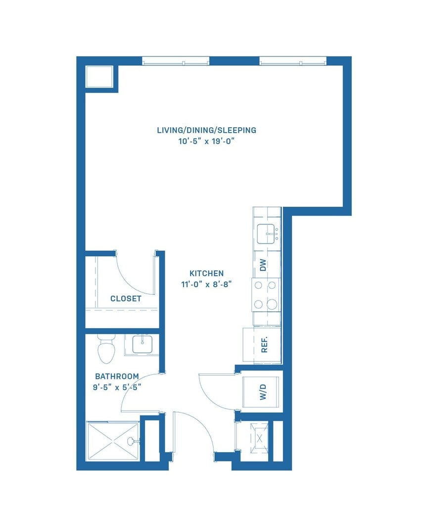 Apartment Model: Style S2.1$2,282Studio, 1 Bath, 505 sq ftAvailable May 2, 2026Floor plans are artist's rendering. All dimensions are approximate. Actual product and specifications may vary in dimension or detail. Not all features are available in every rental home. Please see a representative for details.
