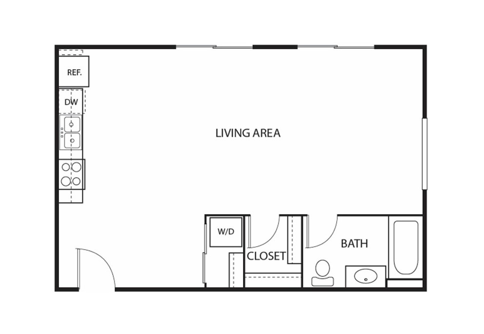 Studio, 1 Bath, 595 sq ftTotal Monthly PriceAvailable NowModel Gallery