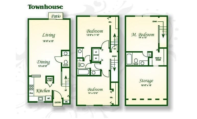 Apartment Model: The Kitty Hawk Townhouse EIK2 Bedroom, 1.5 Bath, 1181 sq ftAvailable Now![]()