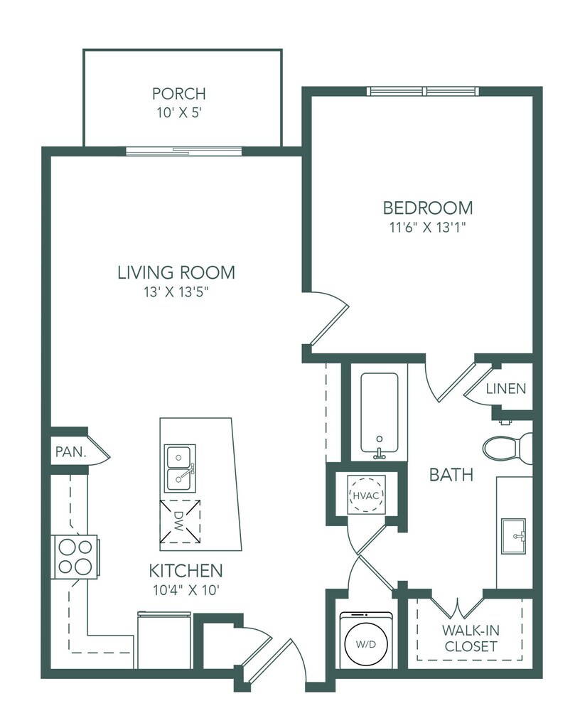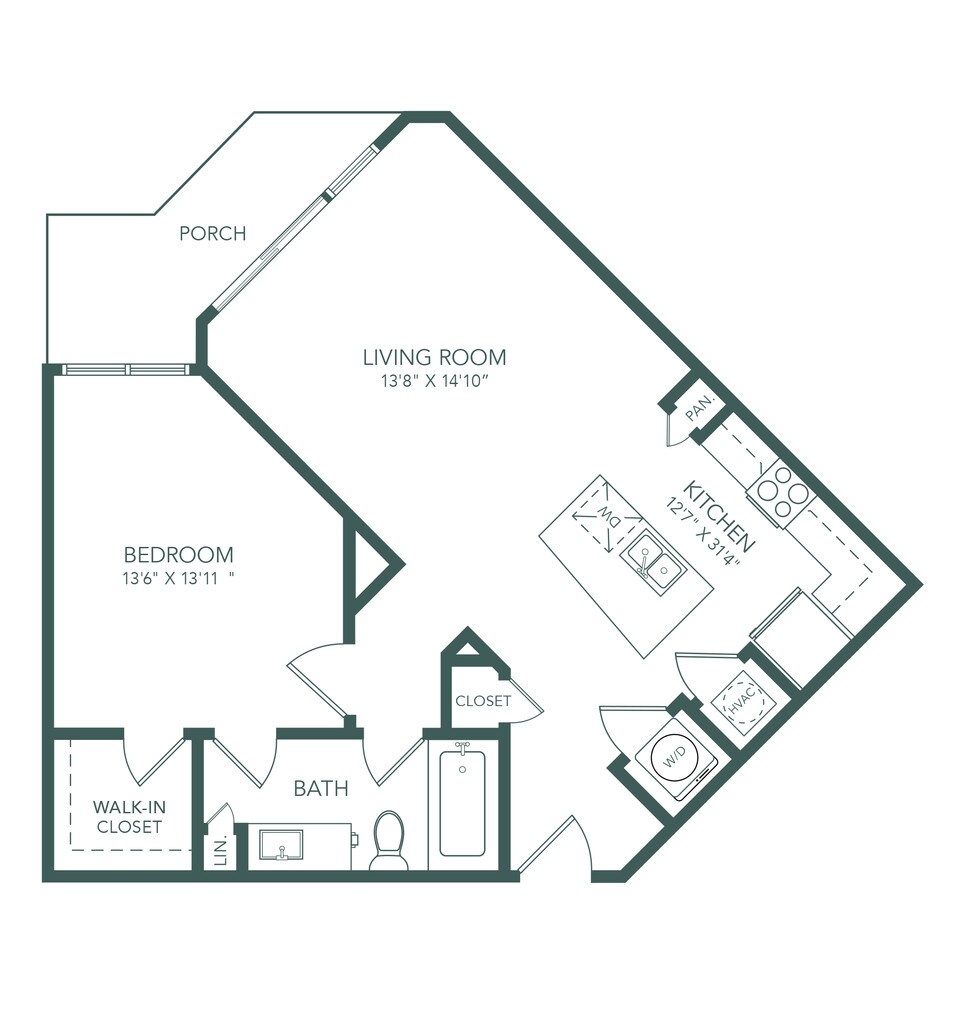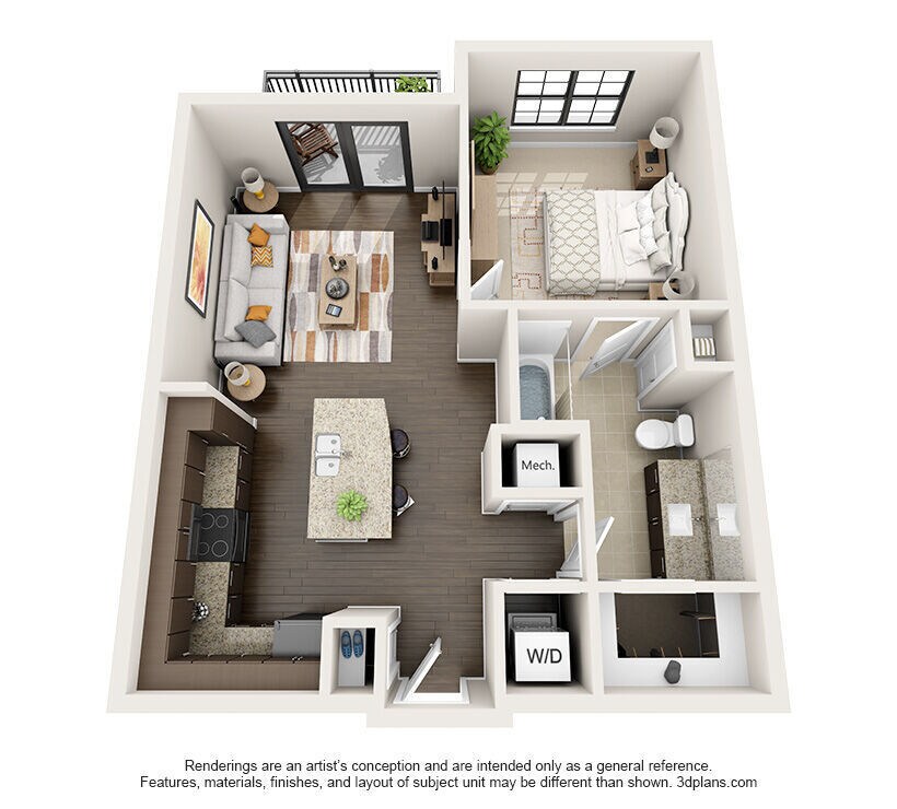 Studio, 1 Bath, 582 sq ftAvailable NowModel Gallery