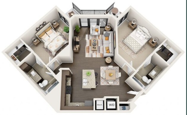 1 Bed, 1 Bath, 653 sq ftModel Gallery