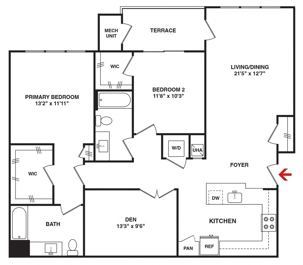 2 Bedroom 2 Bath w/Den - Floorplan 5 Apartment Unit: 7-204Apartment Model: 2 Bedroom 2 Bath w/Den$3,2052 Bedroom, 2 Bath, 1277 sq ftAvailable January 14, 2026![]()