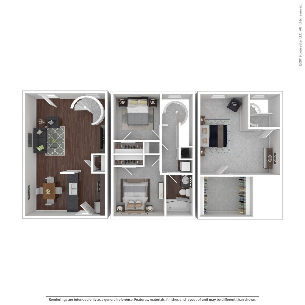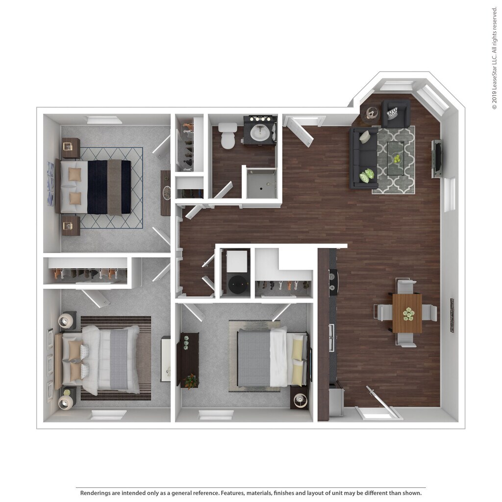 3 Beds, 1 Bath, 1205 sq ftAvailable Dec 12Largest 3 BedroomThis is the largest 3 Bedroom at this PropertyModel Gallery