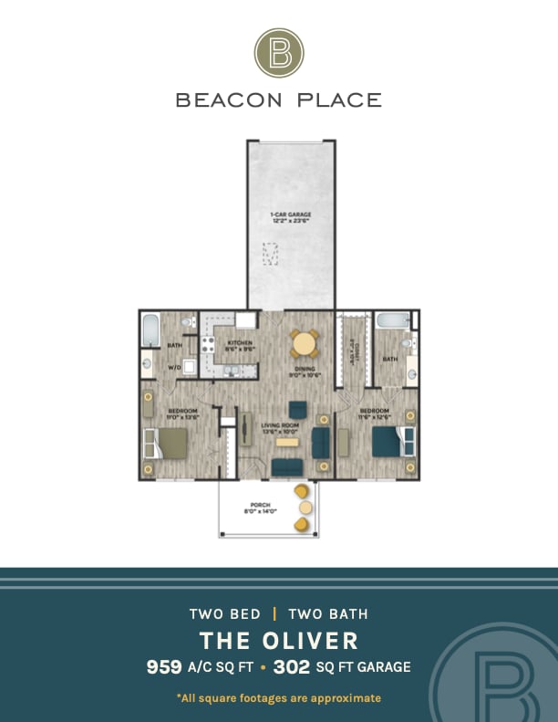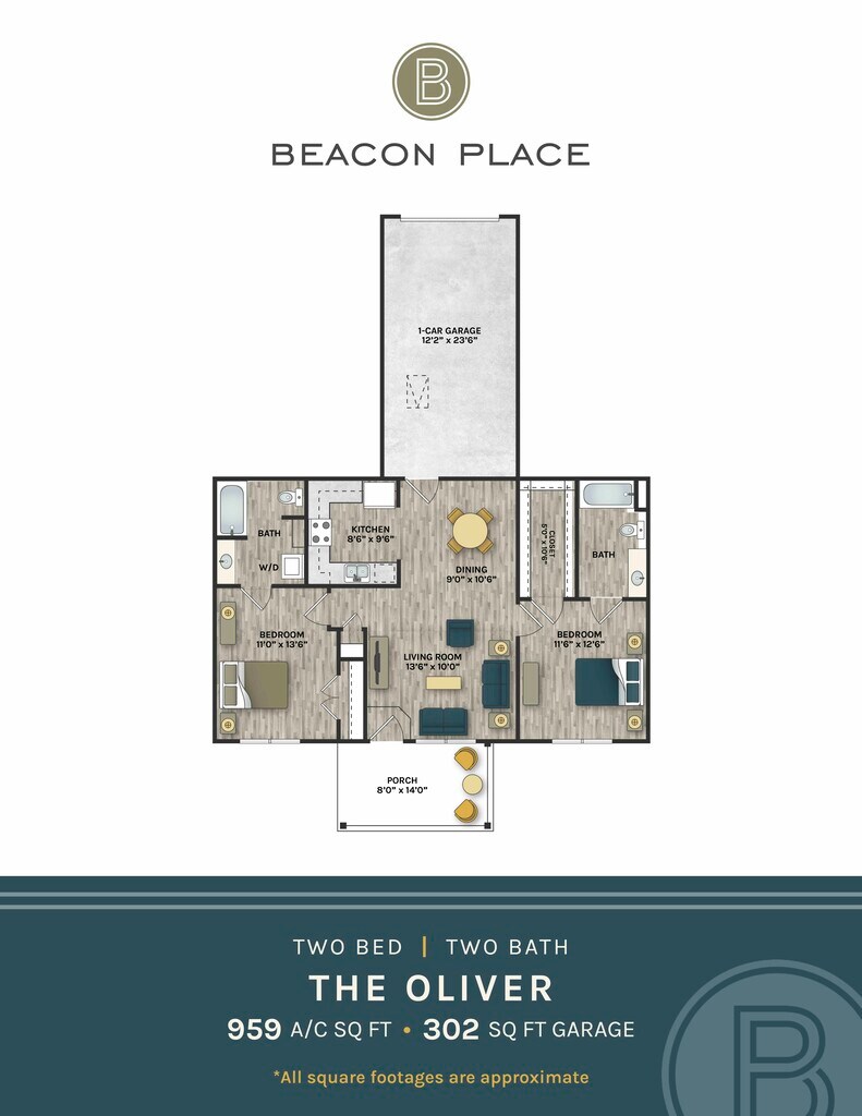 Apartment Model: Oliver-2x2Call For Rates2 Bedroom, 2 Bath, 959 sq ftUnavailable![]()
