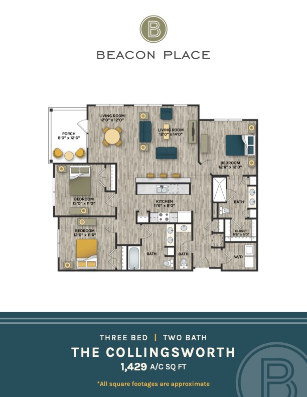 Apartment Model: Collingsworth-3x2.5Call For Rates3 Bedroom, 2.5 Bath, 1429 sq ftUnavailable![]()